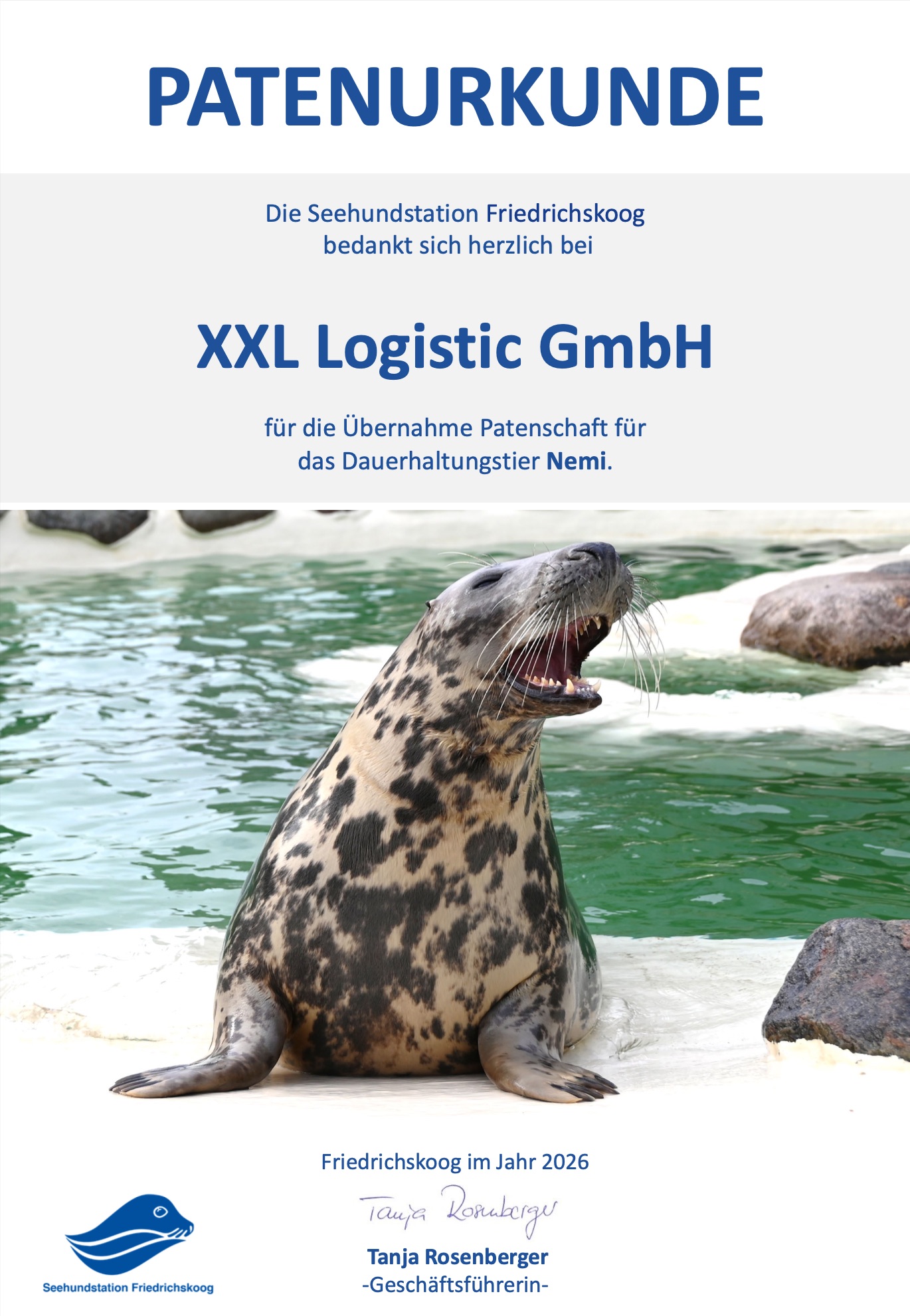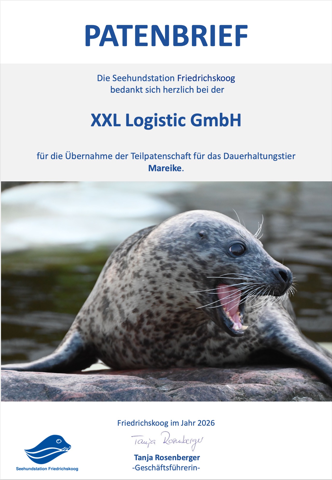 Die Seehundstation Friedrichskoog bedankt sich ganz herzlich bei der XXL Logistic GmbH für die Übernahme der Teilpatenschaften.